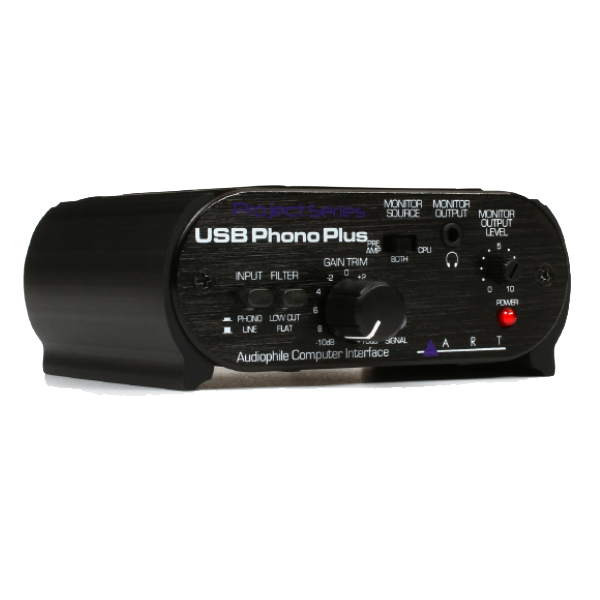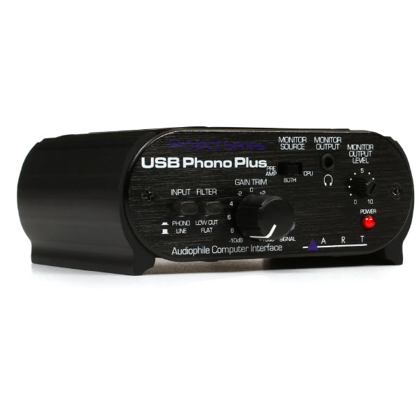 The ART USB Phono Plus phono preamplifier or audio interface is the perfect solution for transferring your prized vinyl collection to your computer. It also makes an ideal audio interface. The USB Phono Plus sports a high performance RIAA phono preamp with a low cut filter for pristine audio transfer. There's a healthy compliment of analog and digital I/O onboard, and front-mounted gain and signal/clipping indication let you optimize a variety of analog sources. The unit is sheathed in a tough, all-aluminum case. If digitizing your records is long overdue, pick up the ART USB Phono Plus.