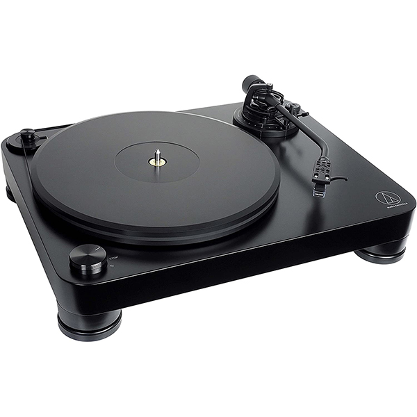 The headshell attaches to a J-shaped tone arm that takes its inspiration from the classic A-T models of the 1960s and ’70s. The tone arm features a metallic gimbal suspension system and precision bearings to mitigate tracking errors, and includes an adjustable counterweight and anti-skate control. The height of the tone arm can be adjusted from 0 mm to 6 mm to accommodate a wide variety of cartridges. The turntable chassis is constructed of 40 mm-thick MDF (medium density fiberboard), an excellent anti-vibration damping material that limits low-frequency acoustical feedback. The anti-resonance platter is made of 20 mm-thick polyoxymethylene and is driven by a sensor-monitored motor that ensures a continuously accurate platter rotation speed of 33-1/3 or 45 RPM. The AT-LP7 also includes a built-in switchable phono/line preamp for connection to components with or without a dedicated phono input, and a selector switch to designate operation with a moving magnet or moving coil cartridge.