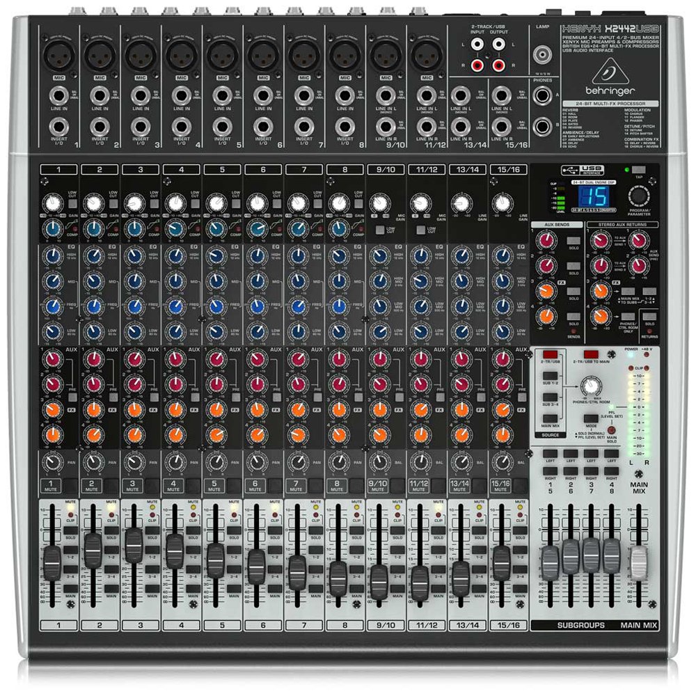 The XENYX X2442USB is a powerhouse mixer designed to deliver professional sound quality, flexible mixing options, and seamless recording capabilities. Featuring 10 studio-grade XENYX mic preamps, ultra-musical British EQs with semi-parametric mids, and easy-to-use one-knob compressors, it gives you total control over every nuance of your performance. Add the built-in 24-bit Multi-FX processor with 16 editable presets—including reverb, delay, chorus, flanger, and more—and you have a versatile tool ready for stage or studio.