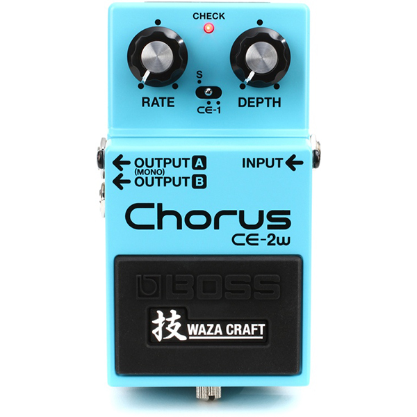 Launched in 1976, the CE-1 Chorus Ensemble was not only the world’s first chorus effect pedal, but also the very first BOSS pedal. Three years later, this inventive new sound was squeezed into the blue CE-2 Chorus, and chorus pedals have remained in the compact lineup ever since. Four decades on, the spacious modulated tone of the signature BOSS effect is still loved by musicians everywhere. In 2016, to celebrate the 40th anniversary of BOSS innovation, the original analog chorus sounds are now reborn with the Waza Craft CE-2W. The CE-2W’s Standard mode faithfully recreates the classic CE-2 chorus sound, and adds an expansive new sound field with stereo output, which was unavailable in the mono CE-2. CE-1 mode fully reproduces the stereo chorus and vibrato sounds of the legendary CE-1, with the addition of variable chorus depth not available in the original pedal. To commemorate the birth of BOSS effects, the CE-2W is made exclusively in Japan, just as the original CE-1 and CE-2 were.