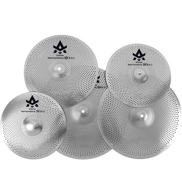BSL 5 Piece A Series Silent Cymbals with 14" Hi-Hats 16" 18" Crash, and 20" Medium Ride Cymbal (Low Volume Quite Mute)