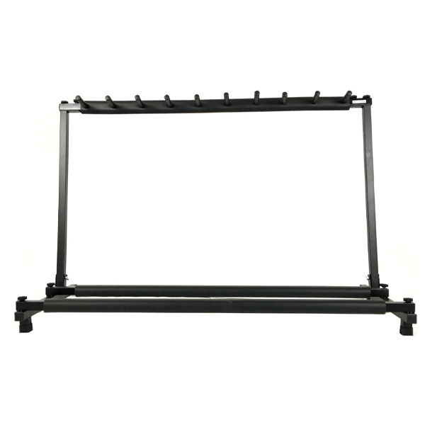 Keeps your guitars and basses readily at hand easily and conveniently. The Multi-Instrument Floor Stand Guitar Holder Display Rack can hold all types of guitars including electric, classical acoustic, and bass guitars. This high capacity multi Guitar Stand can hold up 3 to 7 multiple guitars and guitar bag / cases all at the same time without tripping over.Foam padded support to protect guitar. Safe for standard polyeurethane finishes, not recommended for vintage/lacquer finishes