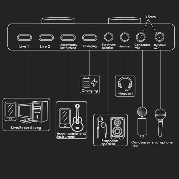 BSL V8 Plus sound card is external sound card that integrates recording,karaoke,live broadcast,and functions such as computer and audio playback.BSL V8 sound card also come with noise reduction DSP chips.