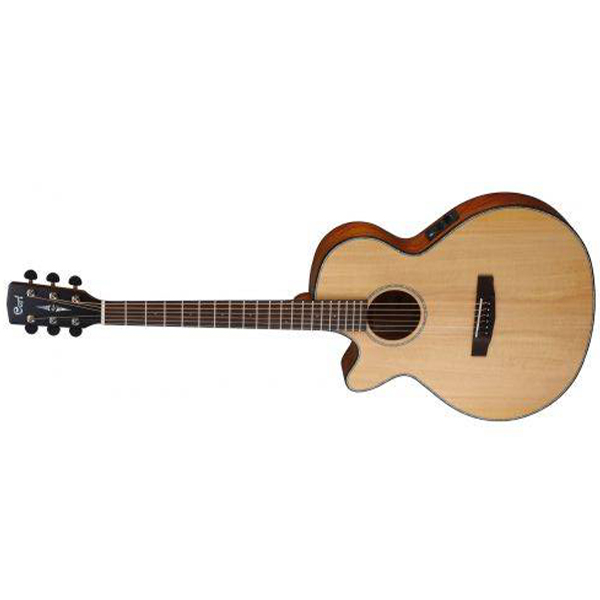 The SFXME by Cort is the perfect guitar for stage and studio. This gig ready acoustic, making it ready to plug in and play. The Spruce top and Mahogany back and sides give it a sound that is big, rich and boomy. The SFXME is comfortable to play thanks to its all access cutaway body design and the V contour neck profile. This guitar is ready to gig when you are.