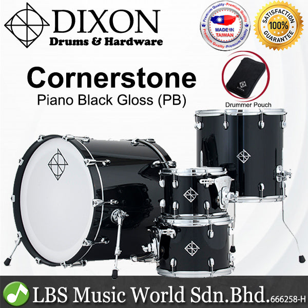 Dixon PODCSTM422 Cornerstone 4 Pieces Drum Kit Set Maple Shell - Piano Black Gloss (Drum Shell Pack)