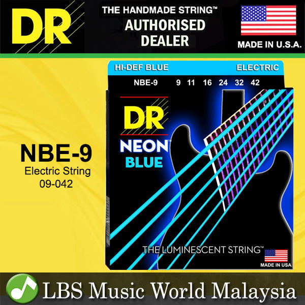 DR Strings NBE-9 Hi-Def Neon Blue K3 Coated Nickel Plated Steel Electric Guitar Strings - Light 09-42 (NBE9)