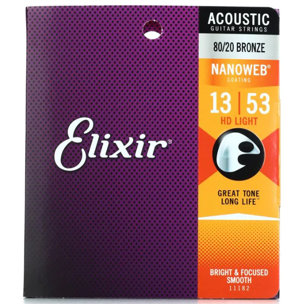Elixir 11182 Nanoweb Acoustic Guitar String 80/20 Bronze (13-53)