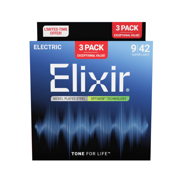 Elixir 16571 Optiweb Electric Guitar String Super Light Bright Smooth 3 Pack (09-42)