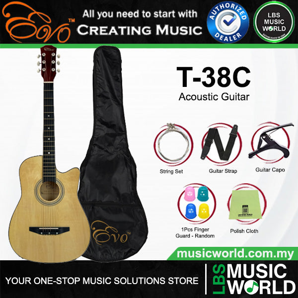 EVO T-38C Natural Acoustic Guitar 38 Inch Beginner Package