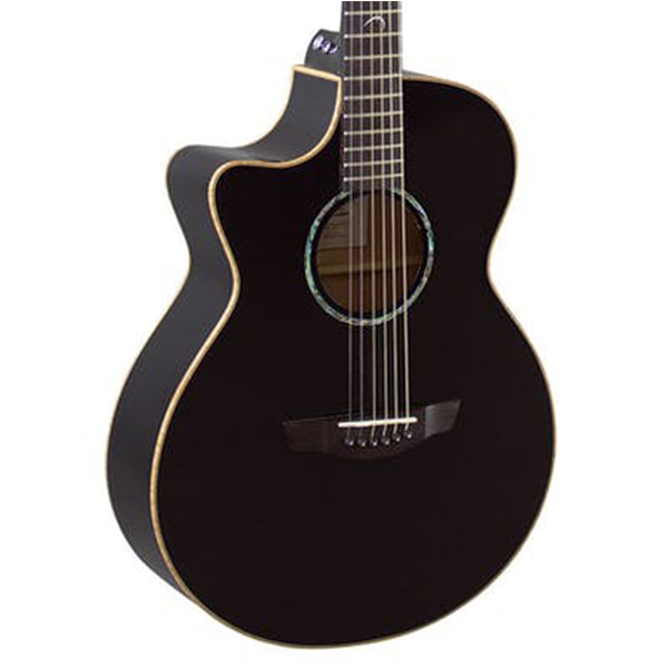 Faith Eclipse series were conceived as 'stage guitars': instruments that offered workhorse functionality and optimum performance capability. Using the same structure and tonewood combination as the Natural Series - Spruce and Mahogany - the Eclipse models are finished with a Black stain and a clear PU lacquer all over. The lacquer serves to control the tonewood resonance a little, resulting in a more predictable and focussed tone when performing on stage.