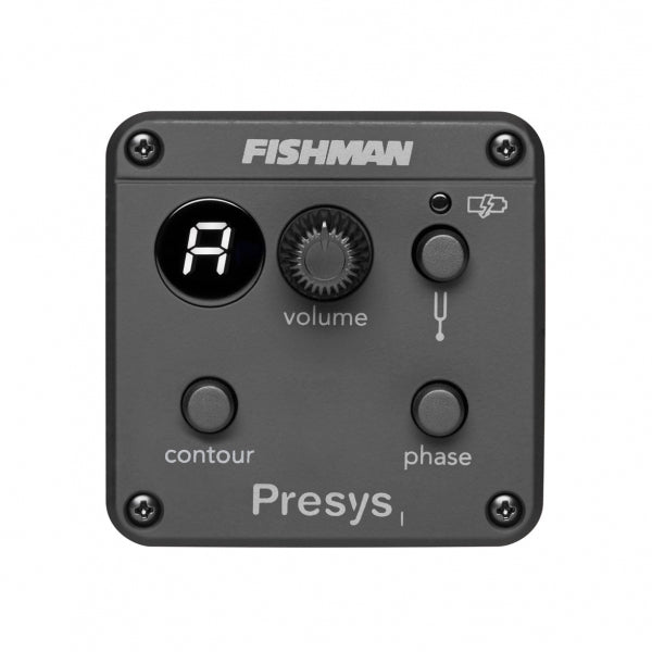 This FKVBK model is equipped with Fishman’s Presys1 sidemounted preamp system, complete with an integrated tuner. The output is routed thru a jack socket / strap button in the base of the guitar.
