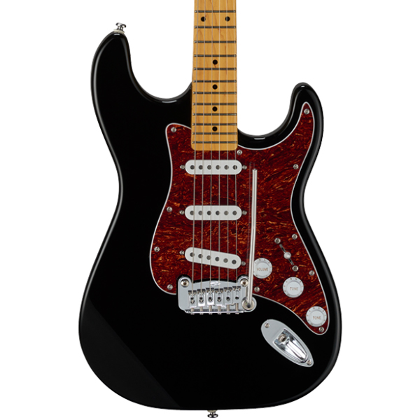 Gloss Black over Basswood, Tortoise pickguard, tinted gloss neck finish, Maple fingerboard