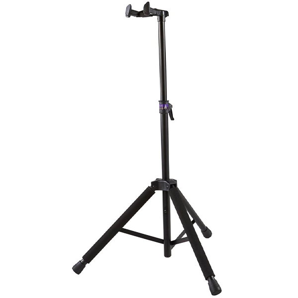 Additionally, the adjustable support mechanism folds back for more compact storage and travel than other popular auto-locking stands. And the fret board/headstock cushions include slots for pick storage.