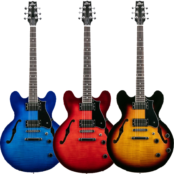 The H-535 blends traditional hollow-body craftsmanship with modern innovation, featuring figured curly maple laminates for a bright, resonant tone adaptable to any style. A push-pull coil split seamlessly switches between lush humbucker warmth and sparkling single-coil clarity.