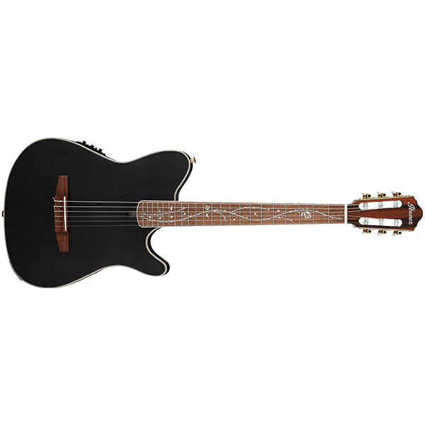 The TOD10N features a very thin FR hollow body with a shape reminiscent of the FR series or a Fender Telecaster. It is constructed of a solid Sitka spruce top with fan bracing on the Sapele back and sides with Pearloid binding on both the top and back. The body is mated to a C-shaped Nyatoh neck with a slotted headstock and walnut fretboard with Pearloid binding and "Tree of Death" thorned vine and rose inlays. It has no traditional sound hole on the top (only a small port to access the truss rod) with an oval sound port on the top side near the upper horn. Components consist of a compensated bone saddle in a walnut bridge, a 46mm wide bone nut, nylon strings and gold classical-style tuners.