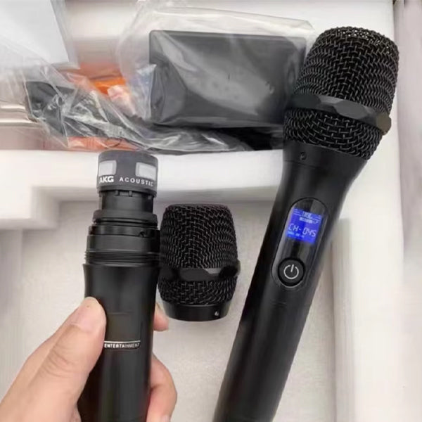 VM300 is the first dual channel UHF wireless microphone system designed to complement the acclaimed JBL karaoke sound. The system includes one SR300 receiver and two HT300 hand-held transmitters and provides the ultra-clarity, rich vocal and interference-free transmission needed in karaoke entertainment or professional sound applications.