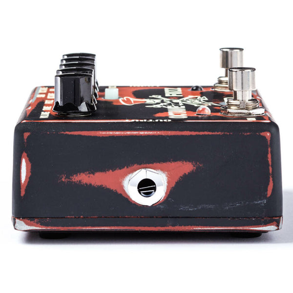Two legendary and timeless icons of rock music—Slash and MXR—have teamed up to deliver the Slash Octave Fuzz. It features a searing Fuzz tone coupled with a separate Sub Octave voice and an Octave Up Fuzz, all for thickening up your tone with a sinister growl. With an array of external and internal controls, there are numerous ways to combine the main Fuzz effect’s thick ’70s shag and the chainsaw grind of the Octave Up Fuzz with the warm growl of the Sub Octave. Internal Gain and Tone pots shape the Octave Up Fuzz effect. Featuring custom Slash artwork and a distressed hot-rod paintjob, the Slash Octave Fuzz features all-analog circuitry, true hardwire bypass, and comes in a heavy-duty housing with durable jacks and switches.
