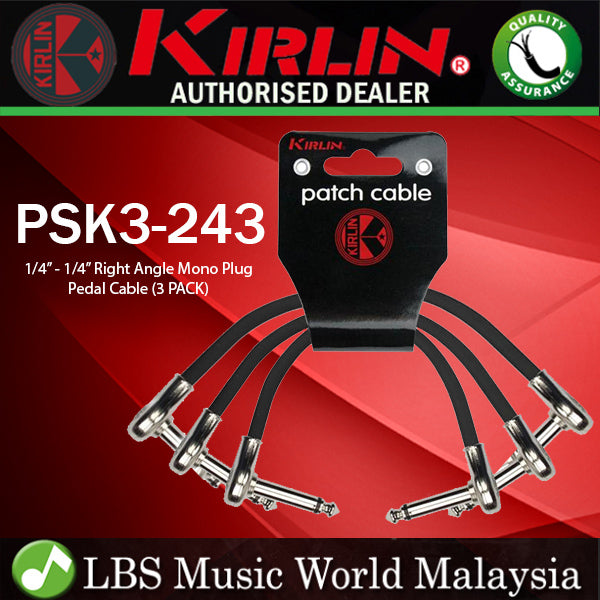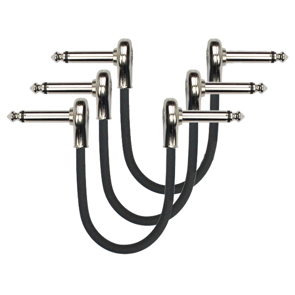 Kirlin PSK3-243 /BK 6 Inch Patch Cable Right Angle L Mono Plug For Electric Guitar Effect Pedal - 3 Pack