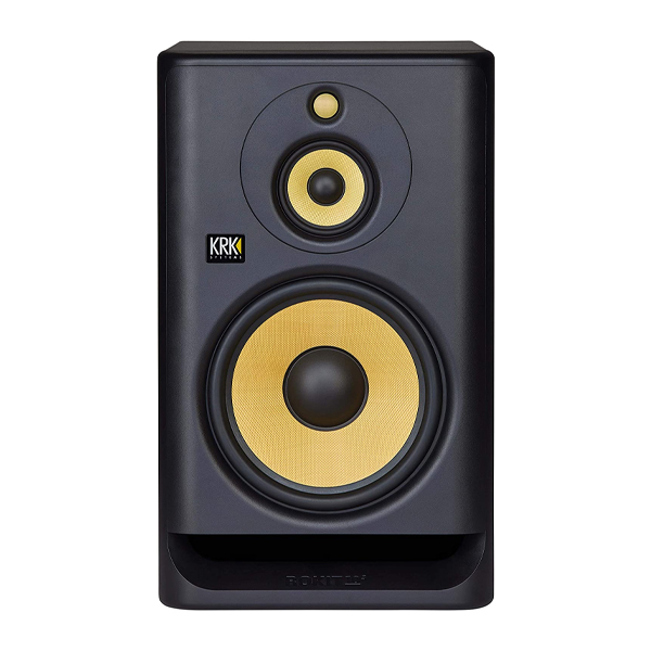 The new thunderous 10" KRK ROKIT RP103 G4 (Generation 4) tri-amp professional monitor takes music and sound creativity to a whole new industry-level. A tri-amp monitor ingeniously built for those needing to hear the depths of their productions clearly on every frequency range. A DSP-driven Graphic EQ and 25 settings help condition your acoustic environment while offering new levels of versatility in a studio monitor. Matching drivers (10", 4.5", 1") made with Kevlar® ensures the same sonic integrity across all frequencies, minimizes listening-fatigue, and offers an incredibly balanced listening experience. A new scientifically designed speaker enclosure and front-firing port offer exceptional low-end extension and accuracy, punch and flexible room-positioning. The new powerful, yet efficient custom Class D power amplifier drives the speakers evenly and more efficiently at reduced operating temperatures and improves audio integrity.