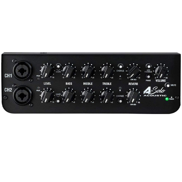 The A-Solo is a professional, compact, and portable acoustic guitar amplifier, dedicated to delivering a clean and clear amplified acoustic guitar tone wherever you need it. Whether in the studio or live on stage the A-SOLO delivers every time. The A-SOLO has two completely independent channel strips. Flexible enough to allow for the connection of either a mic and an instrument, two different acoustic instruments, or even a blend of separate mic and pickup connections from the same instrument. Equally, at home or on the biggest stages in the world the A-SOLO can be your main sound source on an intimate stage or your personal monitor on bigger stages. The A-Solo is loaded with big stage pro-spec features such as feedback elimination and a pro-spec DI out.