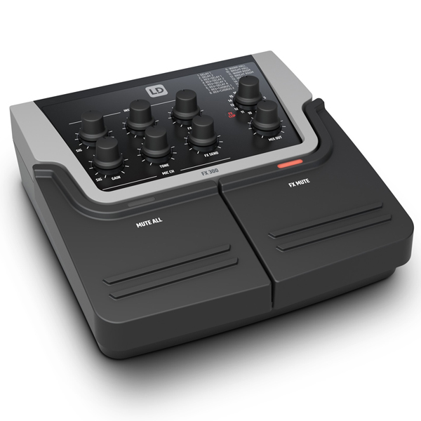 LD Systems FX 300 will blow you away right from the moment you start your show, even if you've had little to no time to carry out a soundcheck. This small yet handy device not only serves as an effect pedal for altering the sound of your voice and instrument but is also an easy-to-use two-channel mixer. Its best feature by far are the pedals that let you control the mute functions with your feet or hand. And if you've got something to say, you can simply mute all effects with the FX MUTE pedal so your voice can be heard loud and clear without any reverb or delay and everyone in the room can understand your message. To prevent the signal of your microphone or instrument from reaching the outputs, all you need to do is tap the MUTE ALL pedal - a lifesaver during breaks or when wrapping up your set.