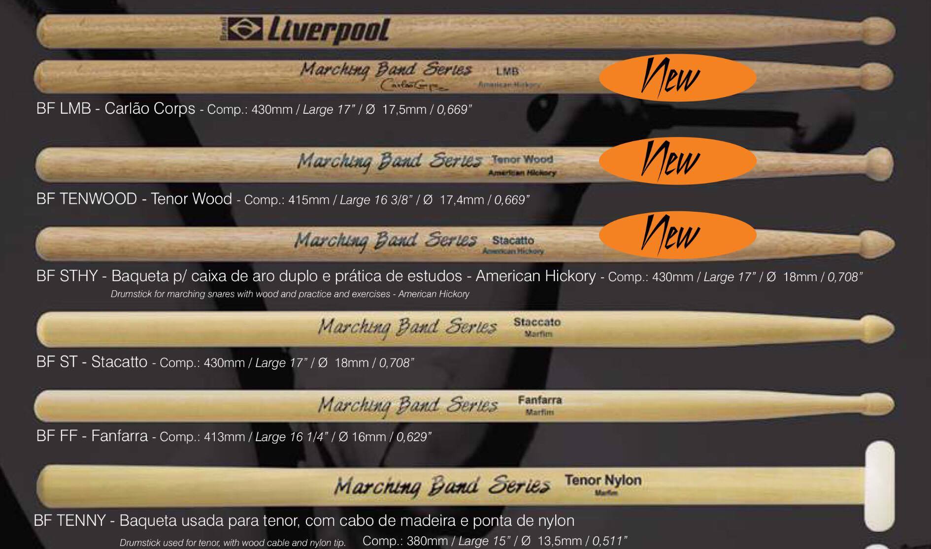 Liverpool Drumstick BF TEN Aluminium Tenor Marching Band Drum Stick