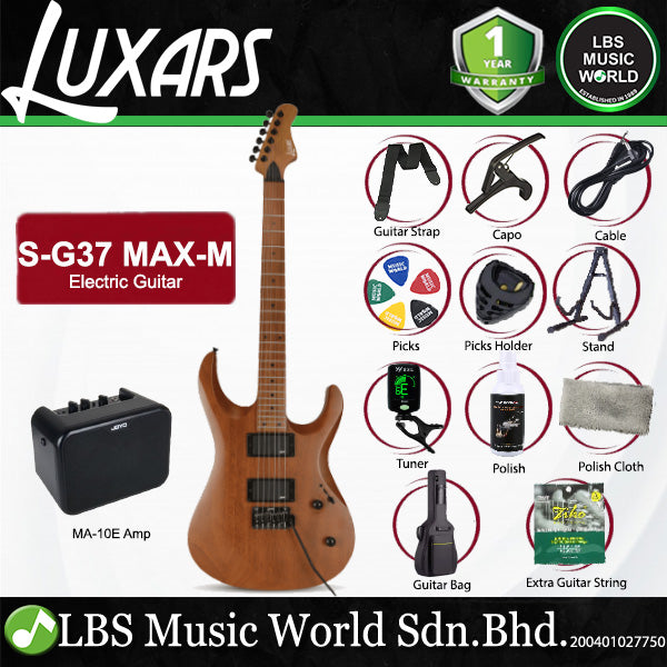 The Luxars S-G37-MAX-M electric guitar represents the perfect blend of craftsmanship, tone, and innovation. Built with a roasted mahogany body and a roasted maple neck and fingerboard, this instrument delivers remarkable tonal depth, warmth, and midrange richness while ensuring long-term structural stability. The 24-fret design opens a full range of musical possibilities, while the modern 2-point tremolo system allows for smooth, expressive vibrato and stable tuning performance. Equipped with dual Alnico V pickups, the S-G37-MAX-M offers a powerful, balanced sound ideal for genres ranging from blues to rock and jazz. Finished in multiple matte color options with a sleek satin feel, this guitar combines elegant aesthetics with high end playability making it an excellent choice for both professionals and serious enthusiasts.
