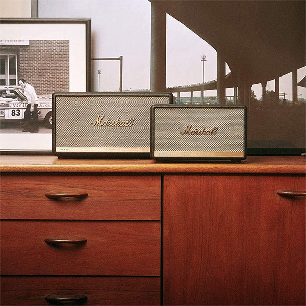 Acton II may be compact, but its sound is nothing short of large. This dynamic compact speaker features three dedicated class D amplifiers that power its dual tweeters and subwoofer, for a sound that is nothing short of large. With Bluetooth 5.0 technology you can play your music in glorious, stereo sound with no wires required. It delivers a well balanced, powerful audio experience, yet can fit in the tiniest of spaces.This speaker combines contemporary technology with iconic Marshall design to deliver hard-hitting sound while retaining a classic look. You’ll want to proudly display this speaker in any room.Fine-tune your music to meet your requirements. Just use the Marshall Bluetooth app or the analogue controls on your speaker’s top panel to perfect your sound according to the room you’re in.There are more ways to connect than just Bluetooth 5.0. Plug in with the 3.5 mm input for an analogue listening experience.This speaker features multi-host functionality so you can easily connect and switch between two Bluetooth devices. Now you and a friend can take turns playing what you want to hear.