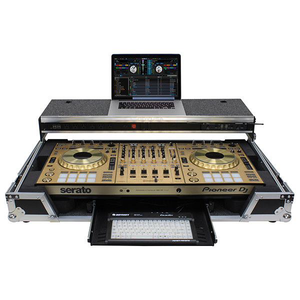Odyssey presents the Premium Edition Flight Zone® FZGSPIDDJSZWR case specifically made for the DDJ-RZ, DDJ-SZ, and DDJ-SZ2 DJ controllers and featuring our patented Glide Style™ laptop platform design. It also features our exclusive, patent pending, high-density bevel foam interior that neatly angles upward raising the controller for an efficient control surface. The stylish V-Cut™ removable panel allows for easy access to the front controls and headphone/mic jacks. Three 1U rack spaces, 1 under the controller section, and 2 just under the gliding platform, are perfect for rack mount gear such as wireless mic systems, power strips, drive racks, or storage drawers. Other features include glide platform tension latches, roller wheels, and heavy-duty top lid recessed handle edges.