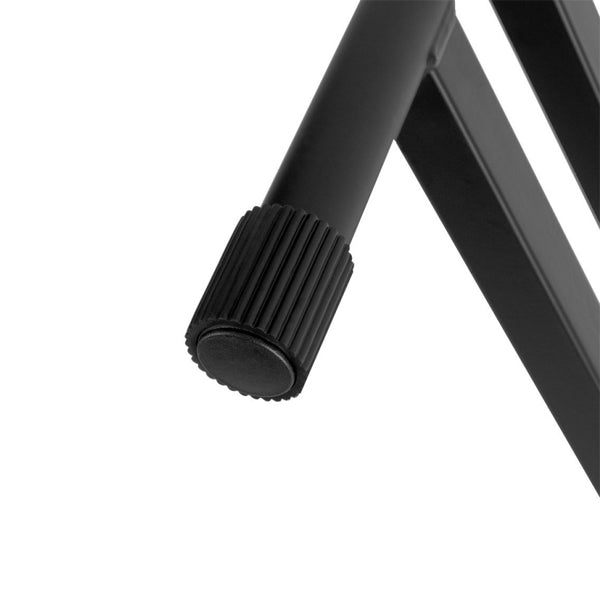 KS7191 Double-X Keyboard Stand provides a wide, stable base and slip-free support for medium-format keyboards. This versatile stand adjusts in height and length to suit various keyboard sizes and playing styles and features adjustable nonslip arm sleeves to accommodate a variety of keyboard widths. The entire stand folds flat for convenient storage and transportation.