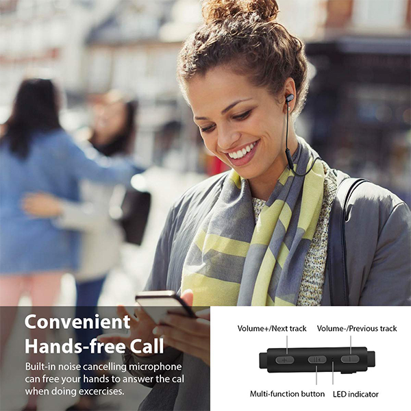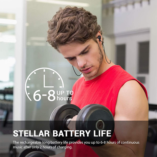 100mAH Battery: Use 100mAh polymer lithium battery, in full power condition, can stand about 10 days.Play music / talking up to 8-9hours (40% volume) equivalent to 160-200 songs.