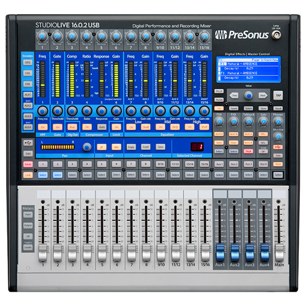 The StudioLive® 16.0.2 USB is a great choice for small churches, schools, bands, and clubs, and it's perfect for a small studio on a budget. It features 16 channel inputs, 4 of them stereo channels, and 12 with XMAX mic preamps; a built-in 18x16 USB 2.0 interface; extensive signal processing on every channel and bus; 4 aux buses; extensive metering; Scene and setting save/recall; MIDI control; and more. Yet it's lightweight and rack-mountable, operates much like an analog console, and delivers superb audio quality. It comes with PreSonus' UC Surface control software, Capture™ recording software, QMix®-UC aux control app, and Studio One® Artist DAW.