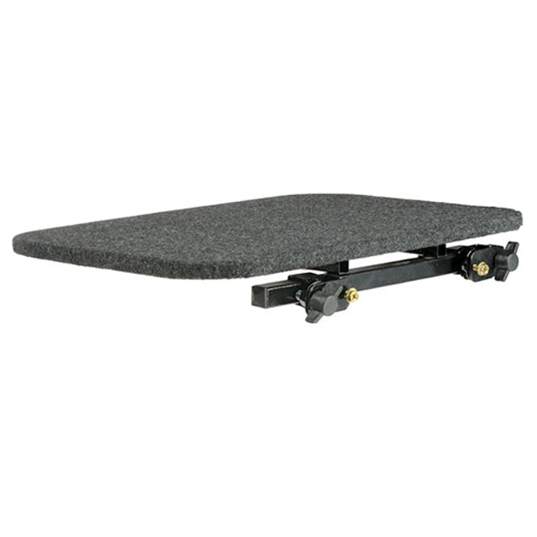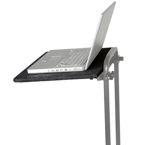 Laptop Shelf clamps to cart handle in seconds. Carpeted 1/2” ply with steel tube support. Adjustable width clamps fit R2, R6, R8, R10, R11G, and R12. LxWxH: 18”x14”x2”. Weight: 4 lbs.