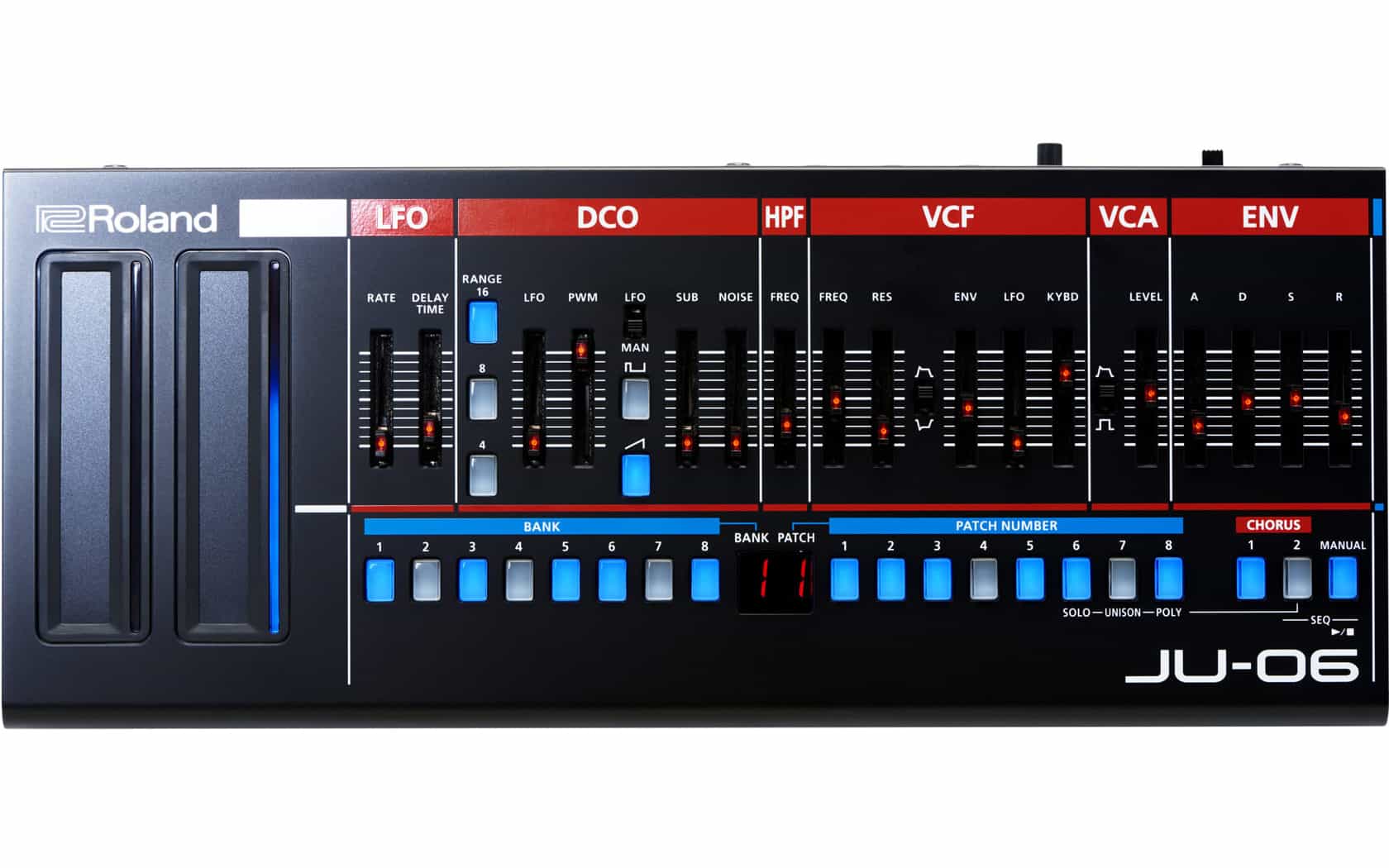 The JUNO-106 is sometimes described as one of the last great synths of the analog era, and it became a firm favorite thanks to its distinctive, warm sounds and instant sound shaping ability. The new JU-06 module has all of the sonic character of the original, with accurate reproduction of the entire sound set including the classic JUNO strings and the much-loved JUNO chorus effect.