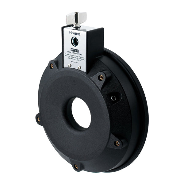 The PDX-6 is the smallest of the Roland V-Pads. Originally designed as a tom pad for the TD-4KX, it provides dual triggering from its 6.5" mesh head and 8" rim.
