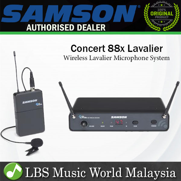 Taking the complexity out of going wireless, Samson Concert 88x combines professional-grade audio clarity, reliable operation in the UHF band with extremely easy setup. The Concert 88x Presentation with LM5 lavalier microphone is the ideal wireless system for the presenter, lecturer, or educator, on-screen talent, plays and stage productions, as well as in a house of worship.