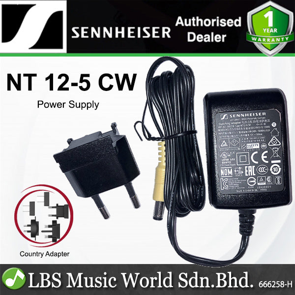The Sennheiser NT 12-5CW AC Power Supply is a replacement power supply for the EM-XSW 1 and EM-XSW 2 wireless receivers (sold separately, part of Sennheiser's XSW wireless series). It comes with US/EU/UK/AU/KOR/CN adapters.