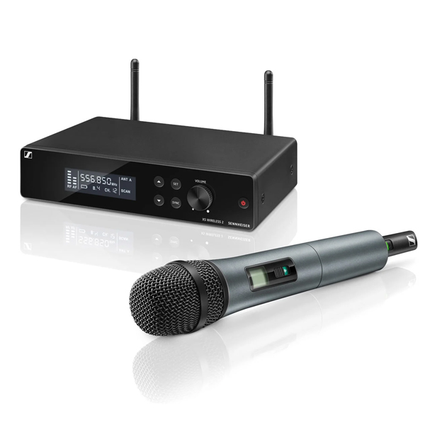 Raise your voice. High flexibility for those willing to go a step further. XS WIRELESS 2 grows with your demands by offering an intuitive LCD display for more manual options and 12 compatible channels in a stable UHF band, withstanding tougher live stage conditions. The XS WIRELESS 2 VOCAL SET is an easy to use all-in-one wireless system for singers and presenters featuring Sennheiser’s renowned evolution microphone capsule e835 (superior dynamic, cardioid) to perform under pressure. True Diversity receiver in a metal housing and rackmount kit included.