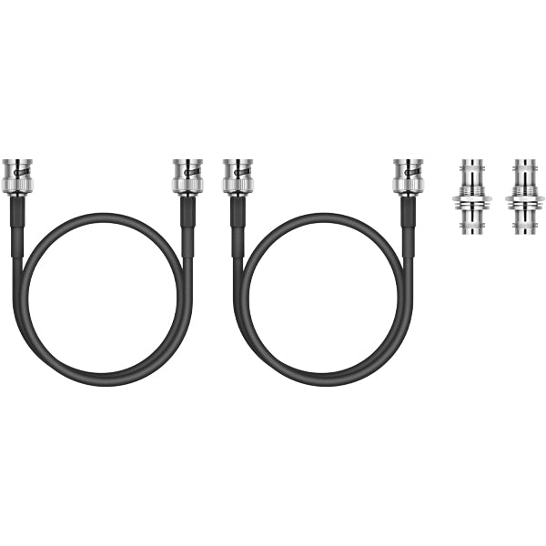 Antenna mounting kit with two antenna front mount cables including two BNC coupler bulkhead. Allows the antenna connectors of stationary rack receivers and transmitters to be dropped to the rack front.