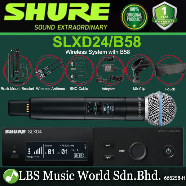 Shure SLXD24/B58 Digital Wireless Microphone System with Beta 58 Handheld Transmitter Mic (SLXD24 B58)