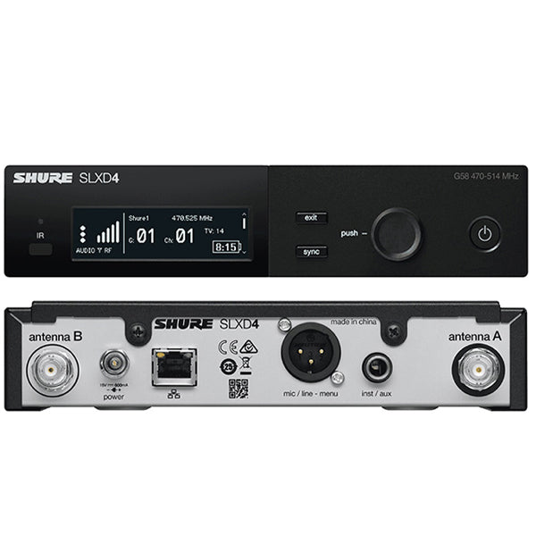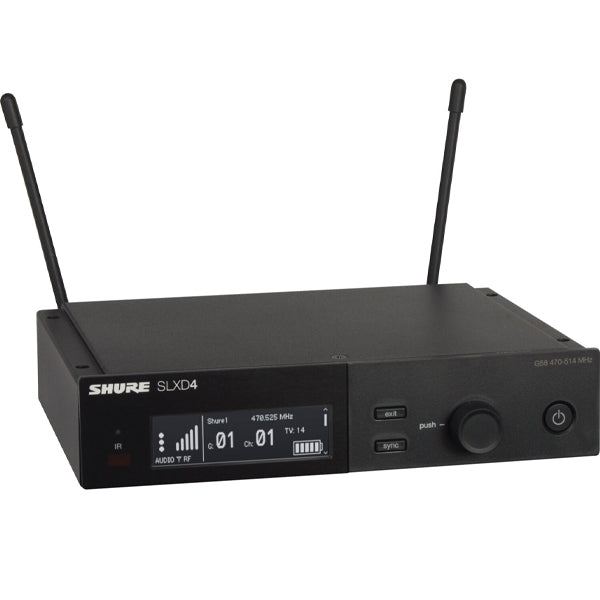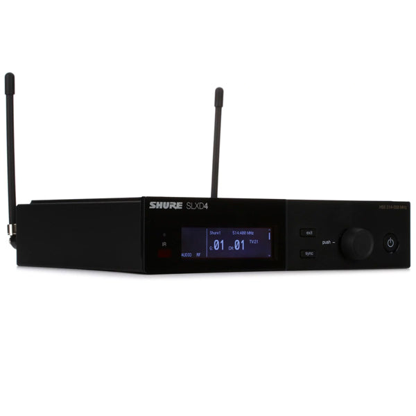 SLX-D® Digital Wireless delivers transparent, 24-bit digital audio and rock solid RF performance with easy setup and rechargeability options in a suite of versatile wireless system configurations. Featuring industry-leading digital wireless technology and design, the SLXD4 easily syncs wireless transmitters. A variety of interchangeable microphone choices guarantees the right solution for a wide range of applications, from day-long presentations to nighttime performances.