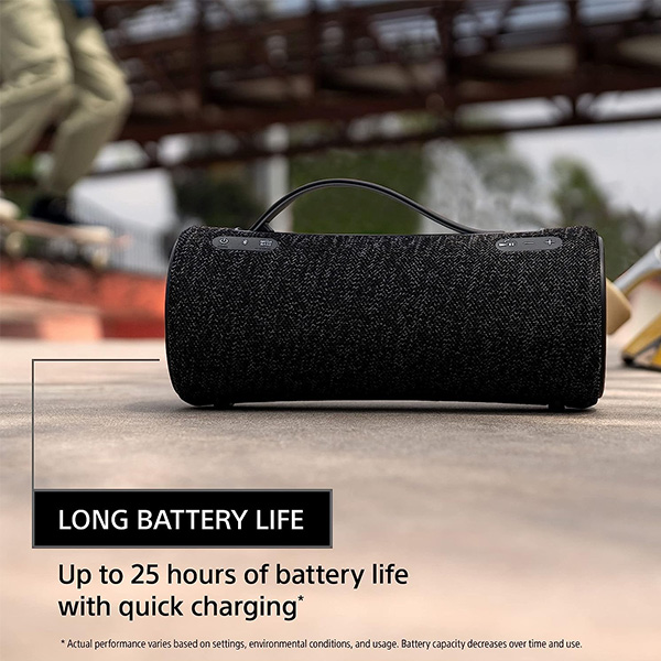 The SRS-XG300 is designed to keep the music playing all day long. With its long-lasting battery life of up to XX hours, you can enjoy your favorite playlists without interruptions. The speaker also features a USB port that allows you to charge your devices, ensuring that the music never stops and your devices stay powered up.