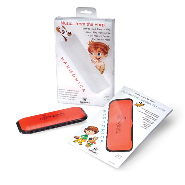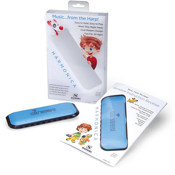 The Suzuki Airwave is a large diatonic harmonica with large holes. It is rounded and has a plastic body. It is specifically designed for children, with no metal screws or sharp edges. While the reeds are brass like in many professional harmonicas, the Airwave is definitely not meant to be played by professionals. It can be fun to pull out an extra large harmonica when you play a gig, but they are mainly meant to be teaching tools for children. The Airwave is inexpensive, and it comes in several bright colors that kids will love. So, it's a good addition to any school music class.