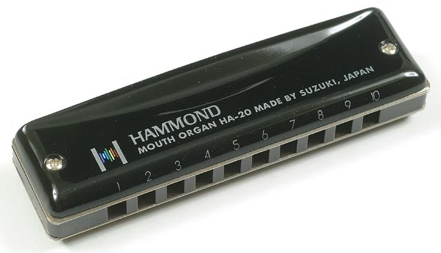 Look no further. The HA-20 harmonica carries the colored Hammond logo, which looks great against its black shell. Immediately you will be addicted to its beautiful sound. The HA-20 features Phosphor Bronze reeds and includes a hard shell carrying case.