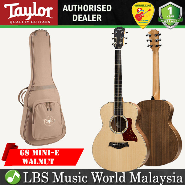 This addition to the popular GS Mini family features layered walnut back and sides paired with a solid Sitka spruce top. Like its other Mini siblings, our modern-day parlor guitar has wowed the world with its fun-size appeal, packing a grown-up guitar voice into a scaled-down form that fits perfectly into everyday life. As active or relaxed as you want to be, having a Mini on hand is like having your songwriting muse on instant demand. And for beginners, it makes an acoustic guitar feel super-approachable. The Mini ships with a durable, lightweight hard bag, allowing you to take it anywhere. An onboard Taylor ES-B pickup/preamp also enables you to plug in and make your voice heard. It features a built-in tuner, low-battery indicator, and tone and volume controls.