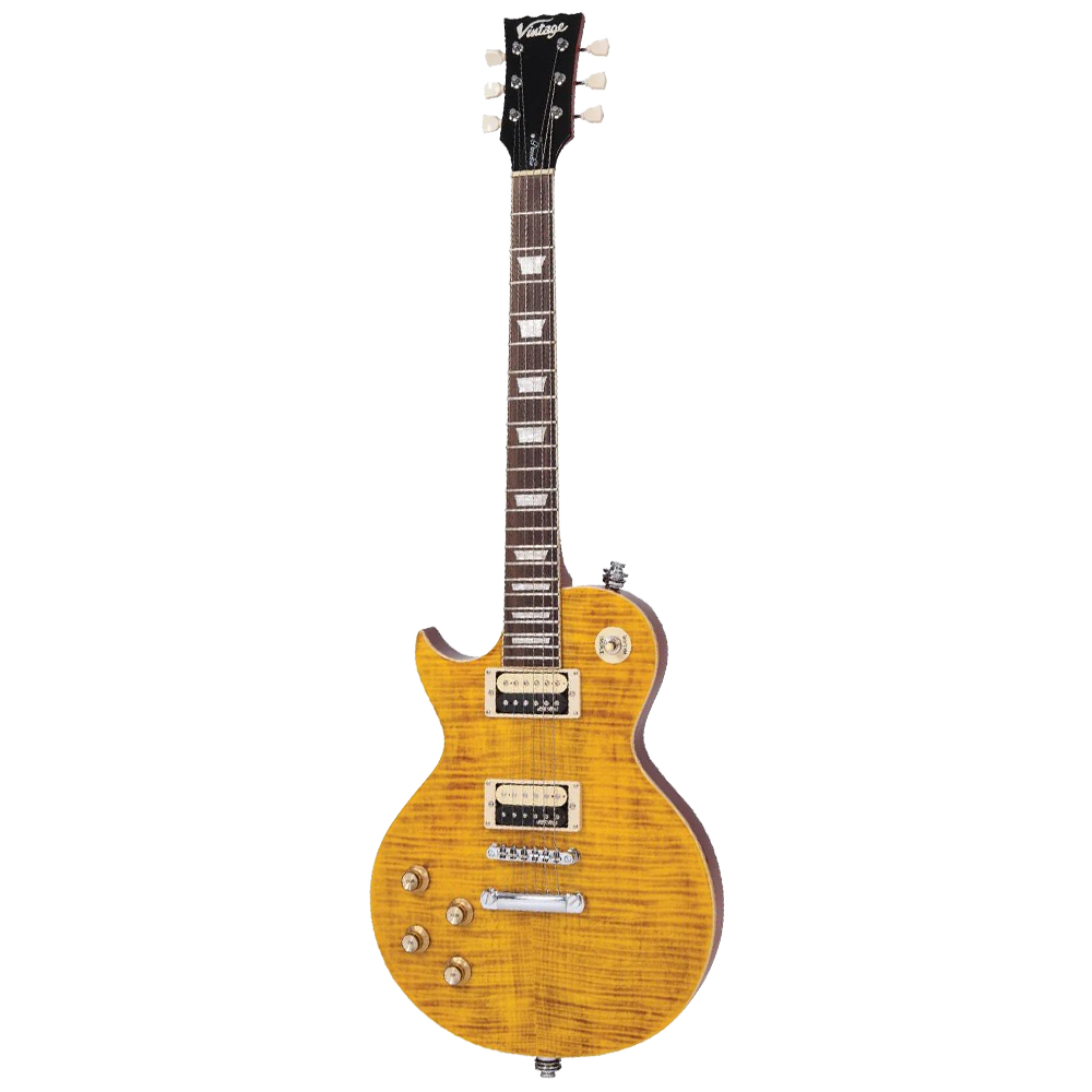 The Vintage ReIssued Series LV100AFD is designed with only one purpose; to fuel your appetite for rock. A pair of uncovered Wilkinson WVHZ pickups provide this iconic looking axe with enough power to handle any high-gained situation, whilst a set of chrome straplocks ensure that your guitar stays safe and secure, no matter how low slung you like to wear it. With its array of classic rock tones, top spec hardware and 'Tiger stripe' finish, the Vintage ReIssued Series V100AFD is your first class ticket to Sunset Strip, c1987. Whether you're searching for your first guitar or your last, every member of the Vintage ReIssued Series is a keeper. Play on.