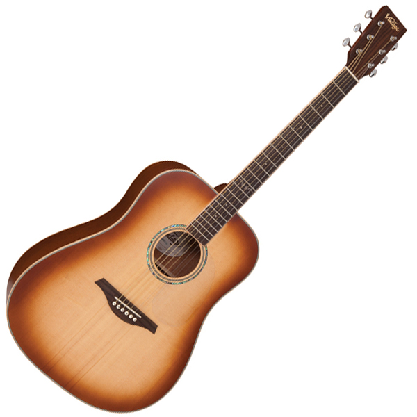 Vintage V501TSB Dreadnought Solid Sitka Spruce Top Acoustic Guitar Satin Tobacco Sunburst (V501 TSB)