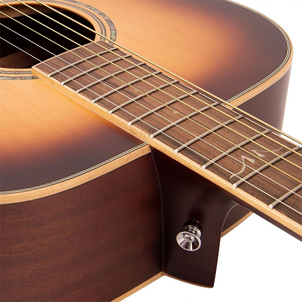 With a neck shape which will suit most hand sizes, the edge bound rosewood fingerboard feels smooth and easy to play, thanks to the fine gauge frets. And on the unfussy, straightforward headstock shape, the chrome plated, enclosed gear tuners are both stable and accurate in use with the high quality USA made strings, further adding to the highly enjoyable experience of playing a V501 acoustic.