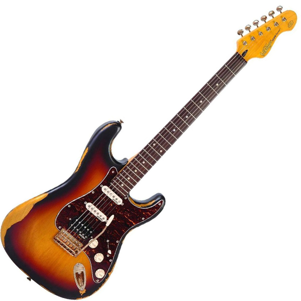 Vintage V6HMRSB Icon Series Alder Body HSS Pickup Double Cut Electric Guitar Distressed Sunburst (V6 HMRSB)