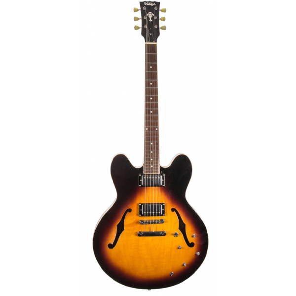 Vintage VSA535 Semi Acoustic Maple Slim Hollow Body Electric Guitar - Tobacco Sunburst (VSA 535)